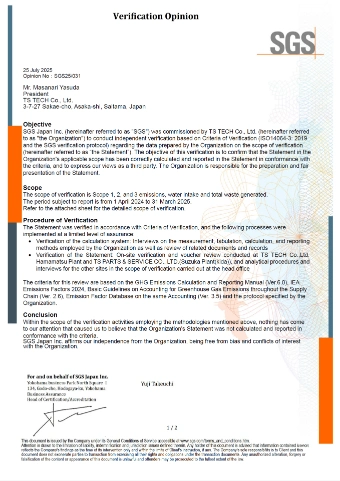 In order to ensure the reliability environmental data disclosure, the Group has obtained third-party verification from SGS Japan Inc. Verification results for fiscal 2025 are as follows.