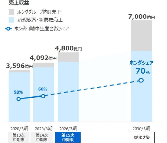 ホンダグループのグローバルパートナーとしてのさらなるビジネス拡大を目指し、ホンダ向け四輪車用シートシェア向上を図っていきます。