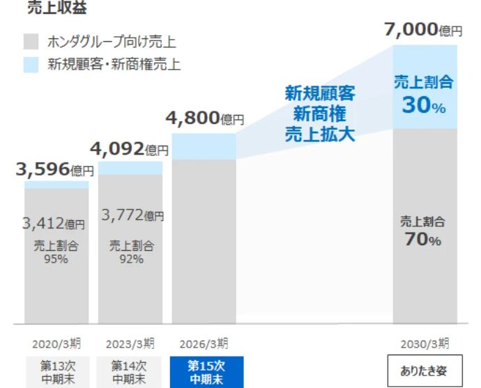 ホンダグループ以外の顧客獲得に向けて設立された新事業統括本部の指揮の下、全世界のお客さまをターゲットとした、 戦略的な営業活動を展開していきます。お客さまごとのニーズを見定めた開発・営業活動によりさらなる拡販を図っていきます。