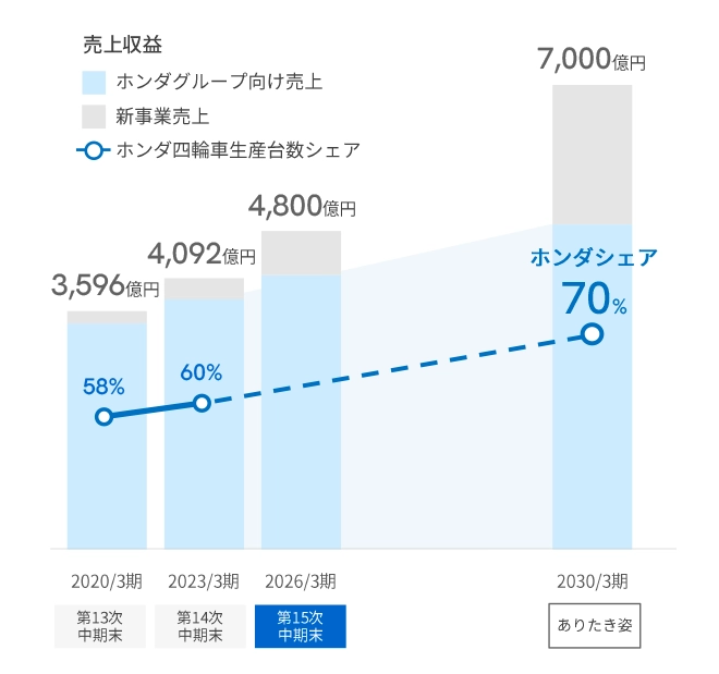 ホンダグループのグローバルパートナーとしてのさらなるビジネス拡大を目指し、ホンダ向け四輪車用シートシェア向上を図っていきます。