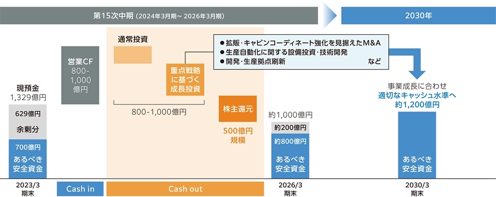 | 自己株式取得 | 第15次中期末 200億円規模の機動的な自己株式取得と適切な消却 |